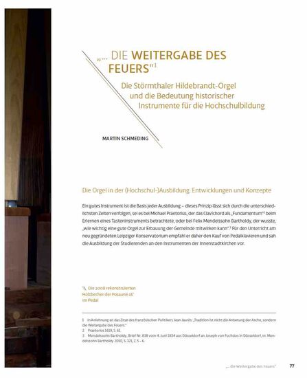 Martin Schmeding: „Die Weitergabe des Feuers“. Die Störmthaler Hildebrandt-Orgel und die Bedeutung historischer Instrumente für die Hochschulbildung