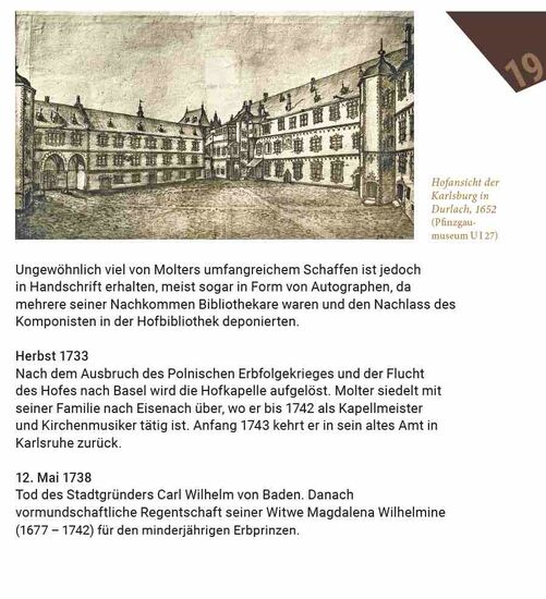 Diese erste Hofkapelle war klein. Sie bestand aus fünf Musikern, davon nur drei mit voller Besoldung. Zusätzlich gab es eine Gruppe von Hoftrompetern und einen Heerpauker. Dreieinhalb Jahrhunderte später ist aus den kleinen Anfängen ein renommiertes Orchester geworden, das aus über 90 Musikern besteht und seit 2020 von Georg Fritzsch als Generalmusikdirektor geleitet wird. Eine aktuelle CD-Edition zeigt die Fähigkeiten des Klangkörpers speziell bei der Gestaltung des spätromantischen Repertoires, das seit Hermann Levis Amtszeit in Karlsruhe intensiv gepflegt wird.