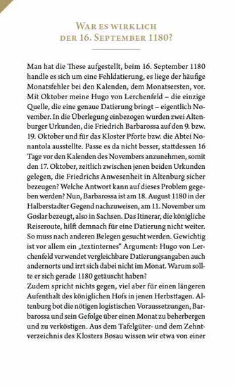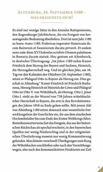 Umfassend beleuchtet der Historiker Christof Paulus die Vorgänge des Altenburger Tags vor dem Hintergrund der Reichsgeschichte des 12. Jahrhunderts. Er geht dabei auf die mittelalterlichen Spielregeln von Politik ein, die sich markant von heutigen Gepflogenheiten unterschieden. Außerdem stellt der Autor zentrale Fragen an das Ereignis vom 16. September 1180: Warum wählten Barbarossa und die Großen des Reiches gerade den Wittelsbacher Otto als Herzog aus? Warum fand der epochale Hoftag in Altenburg statt?
