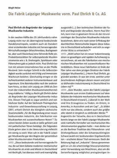 Birgit Heise: Die Fabrik Leipziger Musikwerke vorm. Paul Ehrlich & Co. AG