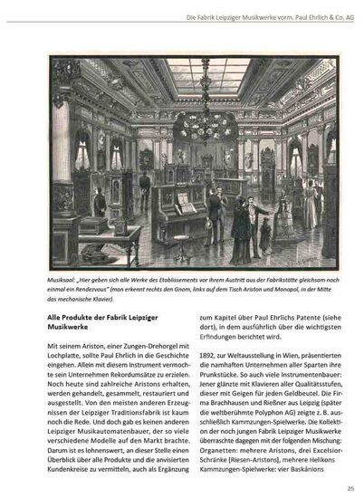 Anlässlich des Jahres der Industriekultur in Sachsen trafen sich zahlreiche in- und ausländische Experten im August 2020 an einem der originalen Schauplätze, nämlich direkt in den ehemaligen Symphonion-Werken in Leipzig-Gohlis, um über das Phänomen des Leipziger Musikautomatenbaus zu diskutieren. Im vorliegenden Buch sind nunmehr wichtige Ergebnisse zusammengefasst und zum Nachlesen aufbereitet. Neben kulturellen Hintergründen, der stadtgeschichtlichen Einordnung, juristischen Fragen (wie den endlosen Patentstreitigkeiten), der Zuordnung der verschiedenen Ariston-Modelle und der zugehörigen Platten sowie Fragen der aktuellen Digitalisierung und Archivierung der Automatenklänge widmen sich mehrere Beiträge Paul Ehrlich: seinen Produktionsstätten, seinen zahlreichen Erfindungen und Musikinstrumenten, aber auch ihm als Privatperson und seiner besonderen Persönlichkeit. Mit Akribie spürten Ehrlichs Urenkel Karin Gauselmann und Achim Quaas sowie Monika Hirsch, deren Stammbaum auf eine Schwester Ehrlichs zurückführt, eine Fülle von Details aus dem Leben und Wirken des berühmten Vorfahren auf und stellten umfangreiches Fotomaterial zur Verfügung. So zeichnet das Buch auch ein umfassendes Bild vom Privatmann Paul Ehrlich, der als treu sorgender Familienmensch bis zu seinem Tode versuchte, durch immer wieder neue Patente den Lebensunterhalt zu sichern.
