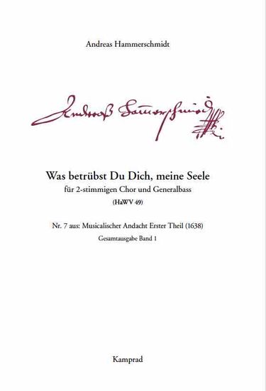 Der vorliegende Band beinhaltet mit „Musicalischer Andacht Erster Theil“ die erste Sammlung mit Vokalwerken, die der damals in Freiberg ansässige Hammerschmidt im Druck vorlegte. Die 21 geistlichen Konzerte sind ein- bis vierstimmig gehalten, werden nur mit Generalbass begleitet und verzichten auf den Einsatz obligater Instrumente. Zwei weitere Stücke aus Hammerschmidts früher Schaffensperiode ergänzen den Band: Mit „Sirachs Lob- vnd Danckspruch“ bewarb sich der junge Musiker beim Freiberger Rat um die Organistenstelle an der Petrikirche, und mit „Hertzliche Auffmerckung und heiliger WeihnachtGruß“ ist eine Frühfassung der Vertonung des Lutherchorals „Vom Himmel hoch, da komm ich her“ aus dem zweiten Teil der „Musicalischen Andachten“ enthalten, die unvollständig überliefert ist und hier erstmals in einer durch Sven Rössel ergänzten Fassung veröffentlicht wird.