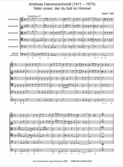 Vater unser, der du bist im Himmel (für 4-stimmigen Chor und Generalbass, Altposaune, Bassposaune, Tenorgambe, Tenorposaune, Violine 1, Violine II, Violone, Zink HaWV 305)
