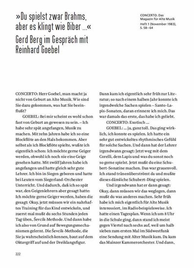 „Du spielst zwar Brahms, aber es klingt wie Biber…“. Gerd Berg im Gespräch mit Reinhard Goebel
