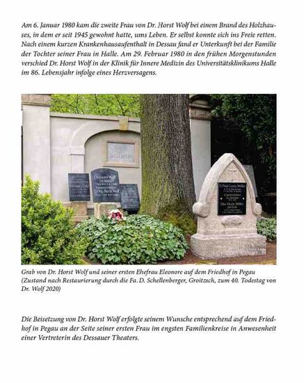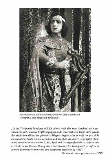 Dr. Horst Wolf war als Schwerer Heldentenor einer der letzten Vertreter dieses Stimmfachs. Bei seinem Abschied aus dem Dessauer Theater 1957 wurde er zu dessen Ehrenmitglied ernannt.