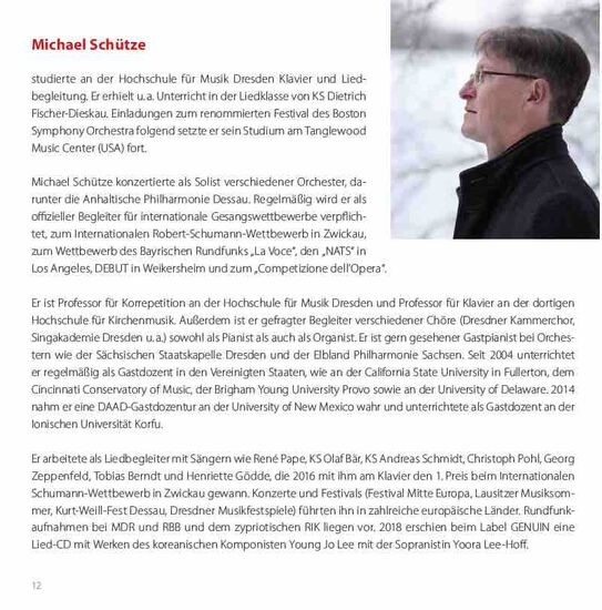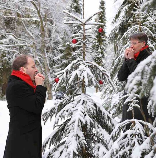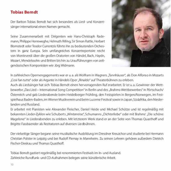 Inmitten des zweiten Corona-Lockdowns im November 2020 kam dem Bariton Tobias Berndt und dem Pianisten Michael Schütze spontan die Idee eines musikalischen Adventskalenders: jeden Dezember-Tag bis Weihnachten ein Lied online auf Social Media. So begann für die beiden Musiker eine Reise durch weihnachtliches Lied-Repertoire der Romantik. Und sie staunten über den vielfältigen Kosmos weihnachtlicher Klänge und Melodien. Bei zahlreichen Begegnungen am heimischen Flügel widmeten sie sich herrlichen musikalischen Kostbarkeiten. Neben den ihnen bereits bekannten Liedern von Peter Cornelius oder Engelbert Humperdinck entdeckten sie bald weitere absolut lohnende, aber weitestgehend unbekannte Werke von Richard Trunk, Joseph Haas, Ingeborg Bronsart von Schellendorf, Karl Hallwachs oder Paul Graener. Diese musikalischen Hoffnungsfunken in einer surrealen Zeit, fernab jeglichen „normalen“ Musiker-Alltags, bekräftigten dann auch den Gedanken für eine Weihnachts-CD. So entstanden letztlich im Festsaal des Dresdner Coselpalais, direkt neben der Frauenkirche, die Aufnahmen, die nunmehr in versilberter Form vorliegen.
