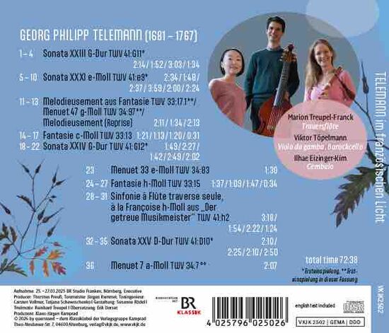 Im Zentrum dieses Albums stehen vier im französischen Stil gehaltene Sonaten für Traversflöte und Basso continuo. Die Werke sind Bestandteil eines handschriftlichen Sonatenbandes, der sich in der Bibliothèque du Conservatoire royal de Bruxelles unter der Signatur MS 15.115 befindet. Die Sinfonie à Flûte traverse seule, à la Françoise h-Moll aus „Der getreue Musikmeister“ wiederum trägt ihre Orientierung sogar im Namen. Die 36 Fantasien für Cembalo solo (TWV 33) gehören zu einer Reihe von Werken, die Telemann um 1730 in Hamburg herausgab; 12 von ihnen stehen deutlich im französischen Geschmack. 1728 und 1730 veröffentlichte Telemann zwei Sammlungen mit je 50 Menuetten (TWV 34), in denen er sich als musikalischer Meister dieser kleinen, durch und durch französischen Tanzform präsentiert. Werke aus TWV 33 und 34 runden die CD ab. Die Brüsseler Sonaten sind hier als Ersteinspielung zu hören, einige der weiteren Werke erklingen erstmals in den hier zu hörenden Bearbeitungen.