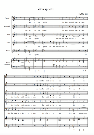 Zion spricht (für 5-stimmigen Chor und Generalbass; HaWV 445)