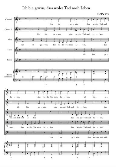 Ich bin gewiss, dass weder Tod noch Leben (für 5-stimmigen Chor und Generalbass; HaWV 453)
