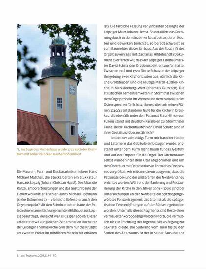 Aus Anlass des Orgeljubiläums geben sechs Autoren profunde Einblicke in die Geschichte der Kirche und ihrer Hildebrandt-Orgel. Die reich bebilderten Beiträge spannen einen thematisch weiten Bogen, der von der Wiedergewinnung des historischen Klangbildes im Rahmen der 2008 abgeschlossenen Orgelrestaurierung über die Nutzung der Orgel in Liturgie und Konzert bis zu ihrer Einbindung in die Leipziger Hochschulausbildung reicht.